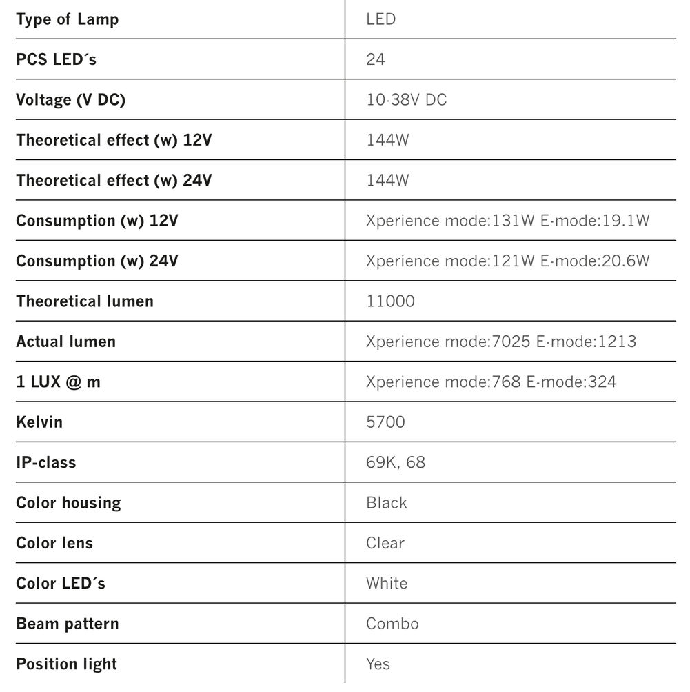 9″ Kastari með öflugum Combo geisla, sannkallað meistaraverk í hönnun sem er gerður til noktunar í erfiðum aðstæðum. Mjög grönn hönnun gerir það að verkum að kastarinn þarf minna pláss fyrir aftan sig en sambærileg ljós. Ljósið er ótrúlega kraftmikið með afkastamikli ljósdíóðu, Siberia Skylord getur lýst upp jafnvel dimmustu vegi og tryggt að ökumaður geti séð allt sem á vegi hans verður. Geislamynstrið hámarkar bæði lengd og breidd. Veldu á milli tveggja stillinga, E-samþykktrar stillingar og Xperience stillingar, með frábærri lýsingu upp á 1500 metra í xperience stillingu og 768 í e-mode. Ljósið er bæði með hvítu og appelsínugulu stöðuljósi