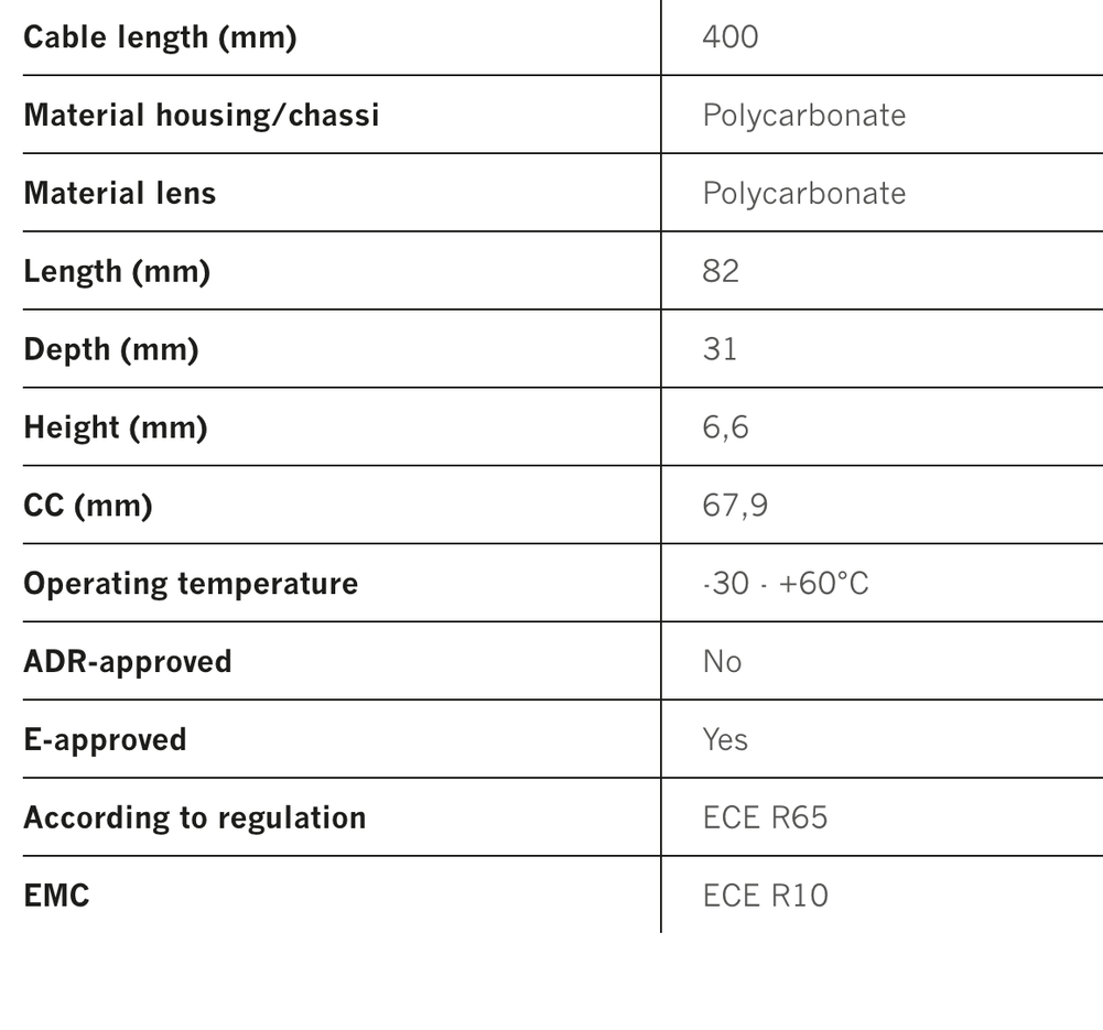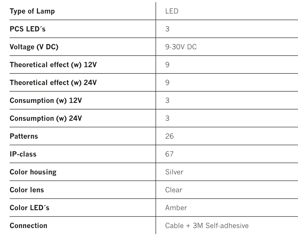 Mjög mjó og nett blikkljós með 3 LED díóðum. Hönnun og notagildi sameinast í þessu ljósi. LxDxH: 82x7x31 mm