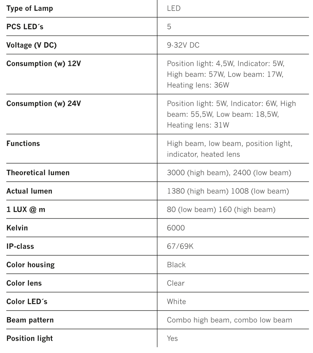 Sennilega flottustu E-merktu ökuljósin á markaðnum með hágum og lágum geisla ásamt upphituðu gleri, stefnuljósi og stöðuljósi. Stílhrein hönnun sem passar á nútíma ökutæki. Hannað fyrir snógplóga en nýtist vel á breyttum íslenskum jeppum.