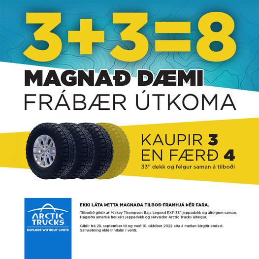 Tilboðið gildir af Mickey Thompson Baja Legend EXP 285/70R17 jeppadekkjum og 17×8 Arctic Trucks álfelgum.